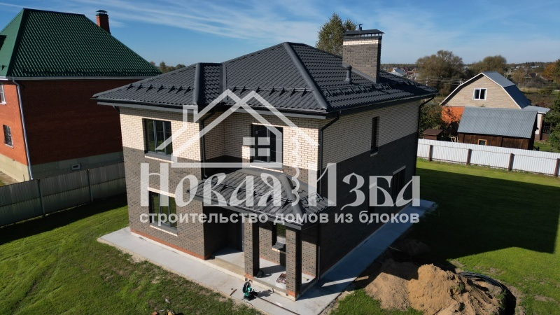 Строительная компания «Новая Изба» построили нам прекрасный дом. У нас дуплекс на две семьи, общей площадью почти 400 кв. Осенью 2019 году залили ленточный фундамент, весной 2020 года планировали начать стройку, но из-за пандемии пришлось перенести. Дом возводить начали в июне 2021 года, закончили в конце октября, до холодов мы успели даже окна вставить) Понравилось что делают сразу фасад дома, поэтапно, чтобы не громоздить потом лесА. Строили из газобетона, фасад из кирпича. Крыша металлочерепица. Так же ребята развели нам полностью электричество и отопление!Всё очень слаженно, очень ответственные, работой довольны!